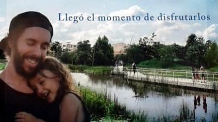 Las tales "socializaciones" convocadas a última hora son para informarle a la comunidad los contratos en ejecución con diseños terminados y sin tener en cuenta en los más mínimo a la comunidad vecina o a los espacios de participación existentes, ¿y si la comunidad no está de acuerdo? De malas, es el mensaje que nos envía la actual administración. Aprecien en la propuesta el borde del humedal encementado, con rejas y adoquines con el lema "llegó el momento de disfrutarlos":